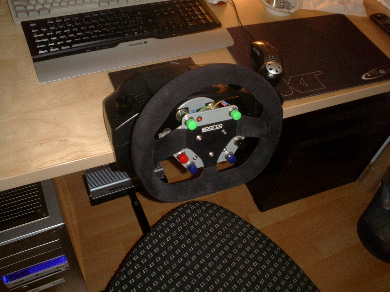 Und weil das alles noch nicht reicht, hab ich dann heute noch meine DFP Lenkrad umgebaut. Ich hatte vor längerer Zeit (glaub im März) einen privaten Umbaukit fürs DFP gekauft. Nur für den neuen Lankkranz hatte ich noch kein Geld. Durch einen glücklichen Umstand bin ich aber vorgestern relativ günstig zu dem Kauf meines favorisierten Lankkranzes (Sparco P260) gekommen. Also, hab ich das geschäftliche mit dem Verkäufer geklärt und mein hübsches Sparco irgendwann nächste Woche erwartet. Nun komm ich heut mittag vom Einkaufen heim und plötzlich steht der Postbote mit meinem Packet vor der Tür.