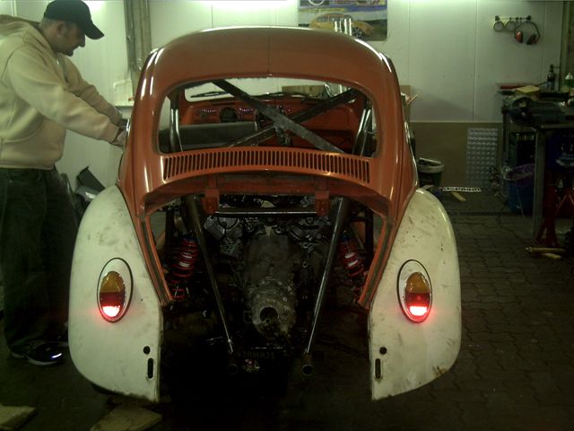 nen 44mm Rohrrahmen aus Nahtlos gezogenem Siede Rohr mit ner 2,8 Wandung ,der TüV Euskirchen war schon mal da und hat sich den Rahmen angeschaut er sagte" Es sei Schiffsbauweise" also absolut robust. Für Rundstrecken ist der Käfer nichts kostet auch viel zu viel Geld.Beschleunigungsrennen mach ich ,natürlich nur wenn meine Maus (Frau) auch mit kommt.