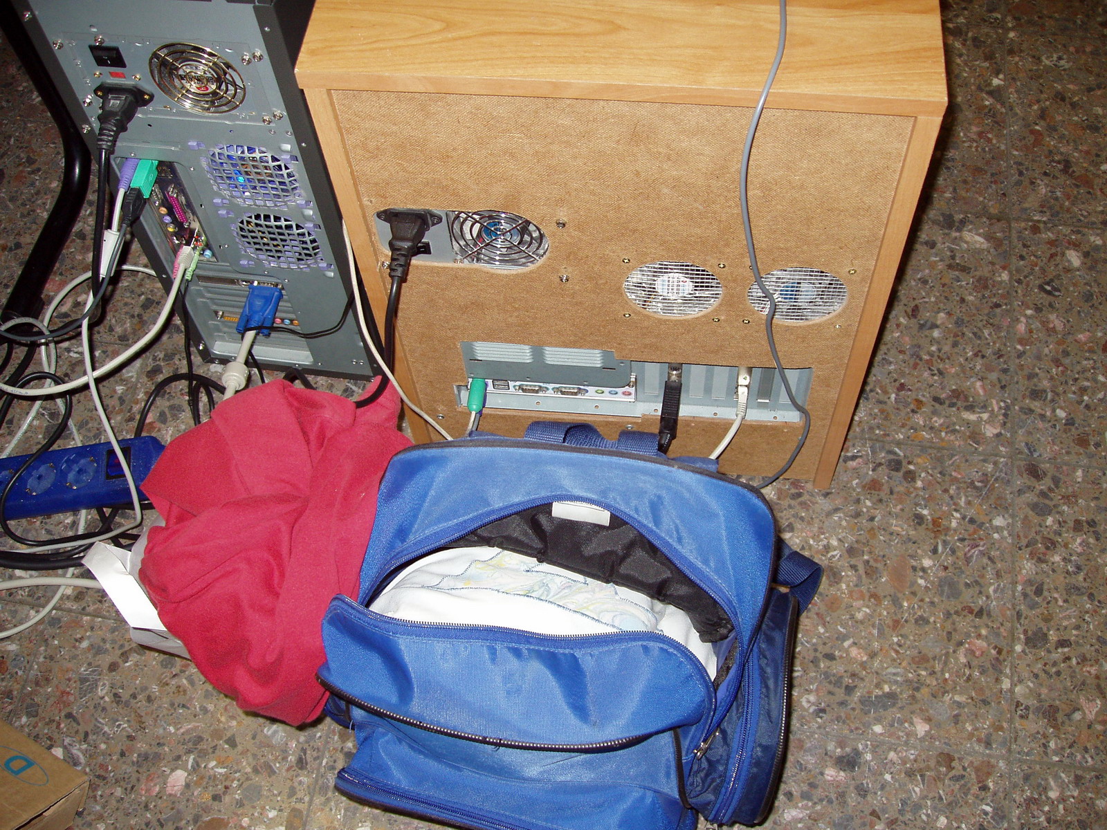 Zuerst wollte ich den PC als Bild bauen, sprich die Komponenten sollten Teile des Bildes werden. Das blaue Mainboard wäre ein See, das silberne Netzteil ein Haus oder Gebirge. Aber das sah alle, naja, sagen wir mal nicht so gut aus. Jetzt ist das Gehäuse schon halb fertig, aber ich hab ne andere Idee. Da das Board, die Grafikkarte, LAN und der Aufsatz blau sind, wird das der blaue Teil des Gehäuses. Daneben ist das Netzteil mit Floppy und 2 HDDs darüber. Das wird alles silber. Der DVD-ROM weiss ich noch nicht, vielleicht ne dritte Farbe. Auf jeden Fall will ich noch ein Neonröhre einbauen, wie man sie in Autos findet. Darüber kommt dann Plexiglas und der PC soll immer noch an die Wand gehangen werden. OS wird entweder ein Win, spezialisiert auf alte Spiele, oder Suse Linux 9.2. Ich denke aber eher Linux. Ich hoffe ich hab den Rechner bis zur Relaned fertig, dann bring ich ihn auch noch mit.